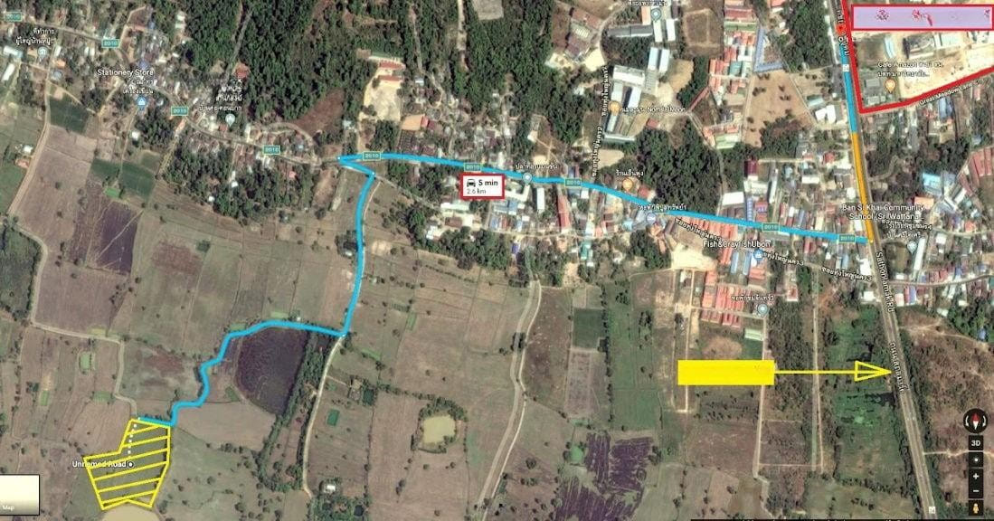 出售地皮 泰国 乌汶府 面积 99,200 平方米 价格为 1.75 美元/平方米